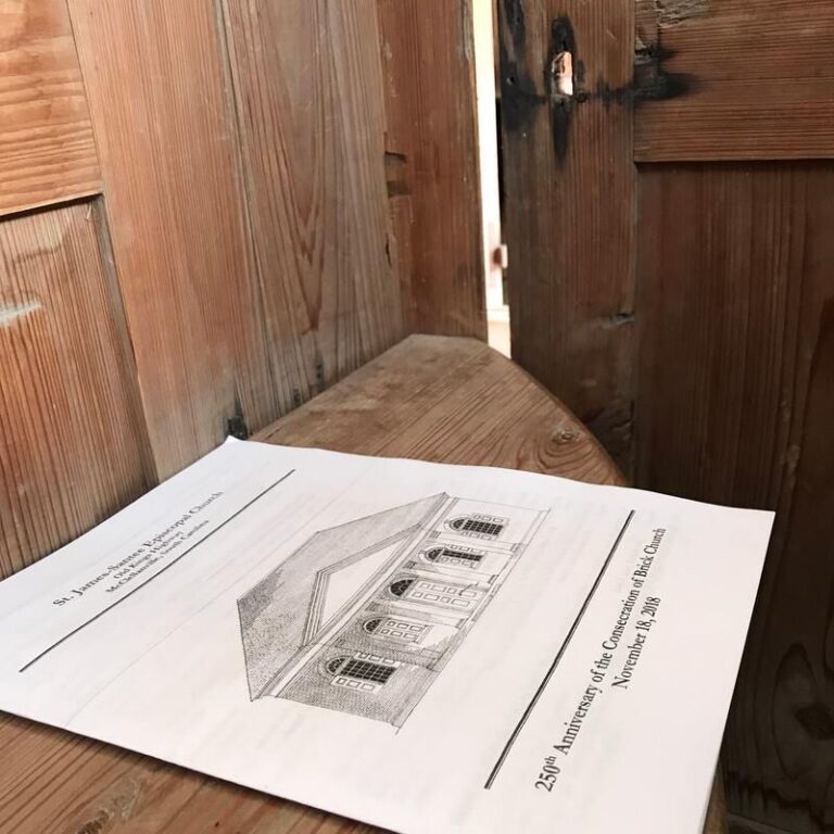 “Her young men and women are going to other homes and other work that call them. Her old men and women are passing away one by one and soon all will be gone, and then she may be desolate for her children, but she still stands, sadly though it be, strong as ever, in spite of her one hundred and fifty years, as evidence of the God-serving who once lived around her, as evidence of the good seed she has sown, which has grown and expanded, like a pebble thrown in the ocean makes a ripple going in an ever widening circle, influencing men for good, and uplifting the world until shall be merged into eternity, as an evidence that the “faith once delivered to the saints” fell not on stony ground, or hearts, but bore fruit, and that abundantly. May she still stand for all time; and may her wide old doors be often thrown open to gather under hoary rooftree the weary, the down-trodden, the sorrrowful, and the saints of the Lord to receive comfort, and to offer their prayers and praises to the Savior, the Living God.” Since its consecration in 1768, the Old Brick Church has survived storms, war, poverty and vandalism, including a short stint as a stable for raiding parties’ horses. But faithful Episcopalians and devoted community members continued to care for the building, both for its architectural and historical significance and as a spiritual home. The non-profit Brick Church Restoration Committee continues to support its ongoing care.