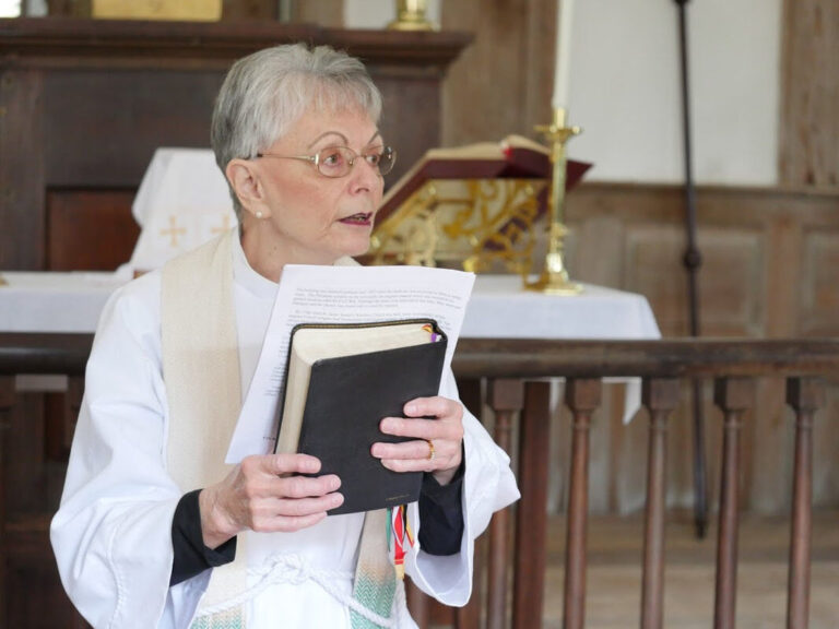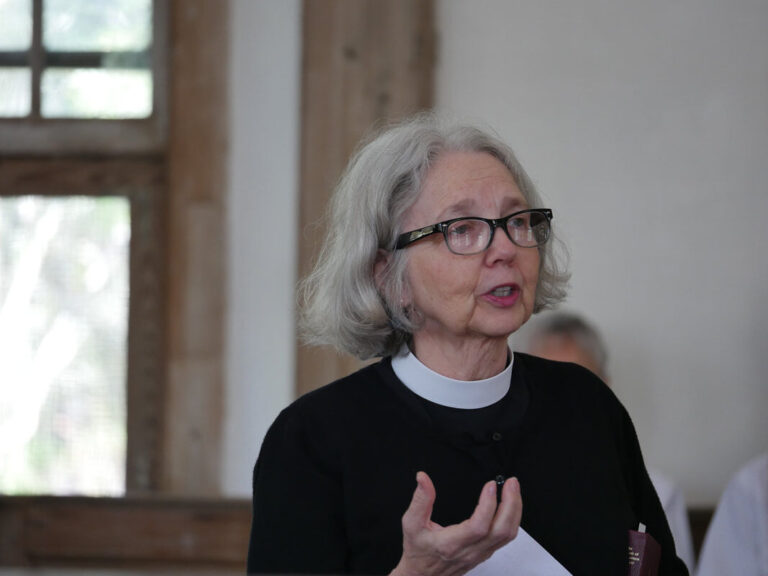 Interim Vicar the Rev. Caroline Goodkind reads a resolution from Diocesan Convention