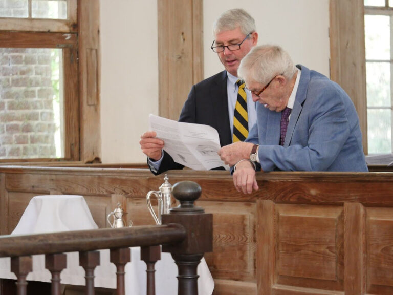 “We are also celebrating the modern-day saints who helped preserve this church over the years,” said the Rev. Caroline Goodkind, interim vicar of St. James-Santee. The Rev. Jennie Olbrych, who recently retired as vicar, gave a tribute to the late William McGillivray “Bo” Morrison, Jr., whose work helped secure the church as a National Historic Landmark and protected the surrounding pine forest and unpaved stretch of road.