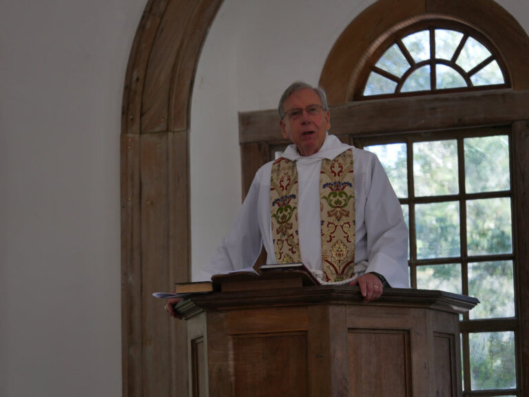 In his sermon, the Rev. Alex Barron read words written by his great-grandfather, David Doar, who as a boy carved his name on a pew door that’s still visible near the pulpit. Fr. Barron read this excerpt from an article published in “The Diocese” in 1918: